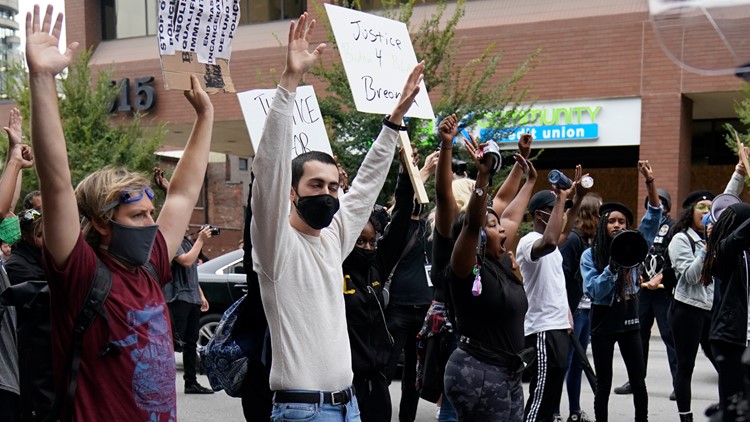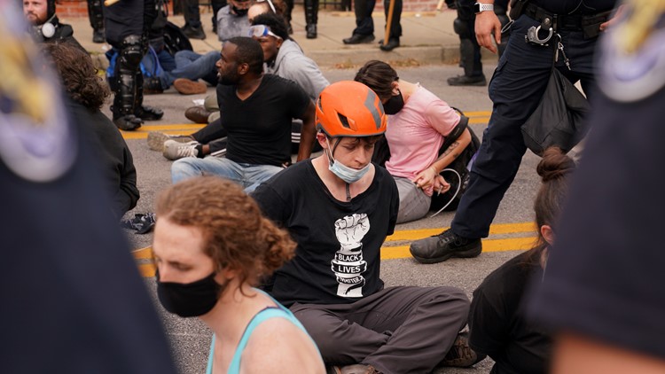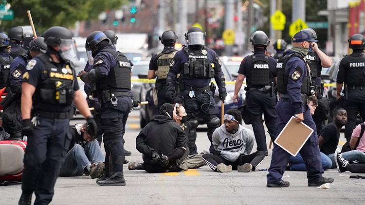 7:45 p.m. Louisville police announced 13 people were arrested during protests on Bardstown Road, while an additional 16 were arrested in downtown. Exact charges were not announced.