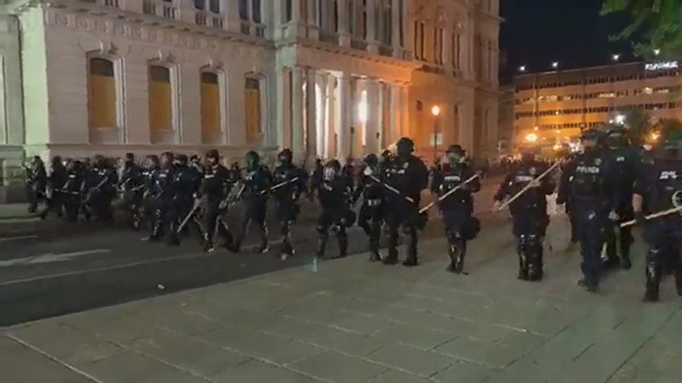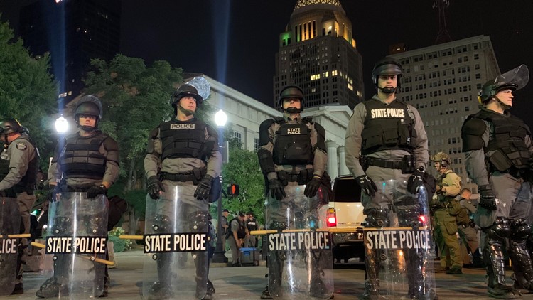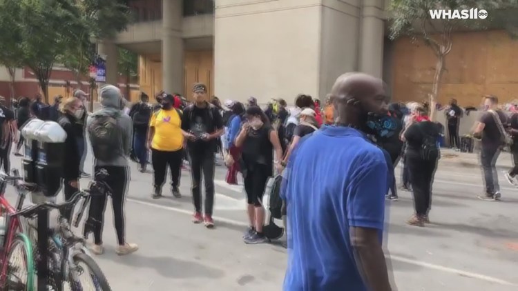 8:12 p.m. WHAS11's Jessie Cohen reports police have used flash bangs in the area near Jefferson Square Park in downtown Louisville.