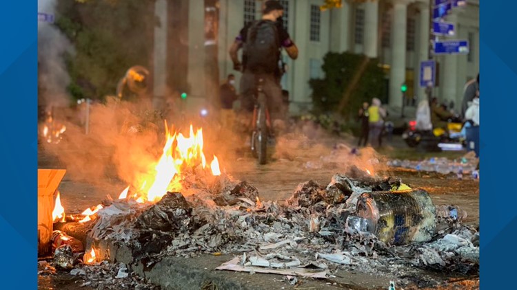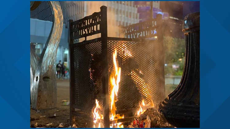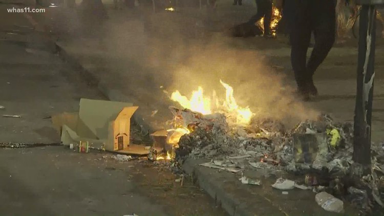 7 p.m. Protesters return to Jefferson Square Park. After a large boom, fires can be seen across from the Hall of Justice. Most protesters cleared out as the fires continued. Crews at the scene reported fires in downtown Louisville.