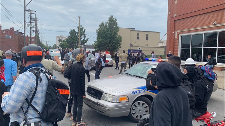 3:50 p.m. Protesters made their way to Bardstown Road, just before Eastern Parkway. Crews witnessed multiple windows being broken and some destruction of property down the road.
