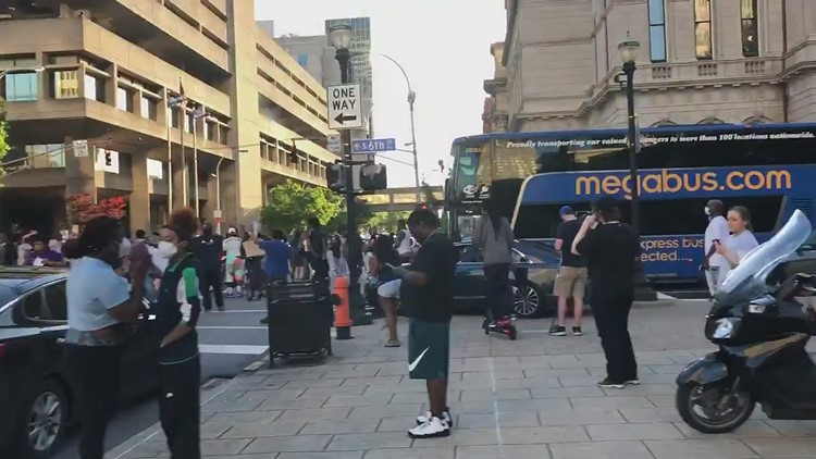 Police met protesters close to Eastern Parkway. Crews at the scene said multiple people were arrested and pepper balls were used.
